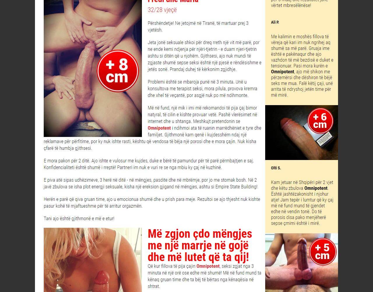 “Seksi ka qenë gjithmonë i rëndësishëm për mua në jetë, dobësia intime më erdhi në moshën 58-vjeçare. Në dëm të shëndetit tim, mora stimulues të njohur, eksperimentet me to përfunduan vetëm kur më çuan në ambulancë në gjendje para goditjes. Pas kësaj, hezitova për një kohë të gjatë për t'iu qasur ilaçeve të fuqisë. Derisa mësova për rënien e komandantit nga një mik. Sipas vlerësimeve të tij reale, fuqia e tij u kthye pasi i mori ato për një muaj. Rezultatet kanë zgjatur për gjashtë muaj. Mendoj se çfarë droge mrekullie, më lejoni ta provoj. Kisha të drejtë, nuk kishte asnjë ndikim negativ në mirëqenien. Presioni i gjakut është normal, zemra nuk po funksionon lart dhe si mashkull, gjithçka funksionon ashtu siç duhet. Shumë i kënaqur. Me gjithë zemër ua rekomandoj meshkujve këto pika.”